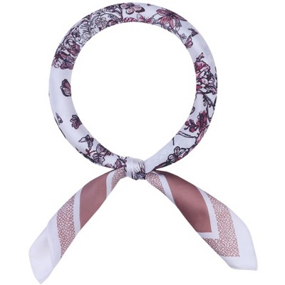 INSPIRE CHIC Women's Floral Printed Satin Square Flowers Silky Neck Scarves 1Pc