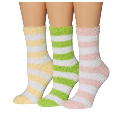 Tipi Toe Women's 3-Pairs Cozy Microfiber Anti-Skid Striped Patterned Soft Fuzzy Crew Socks