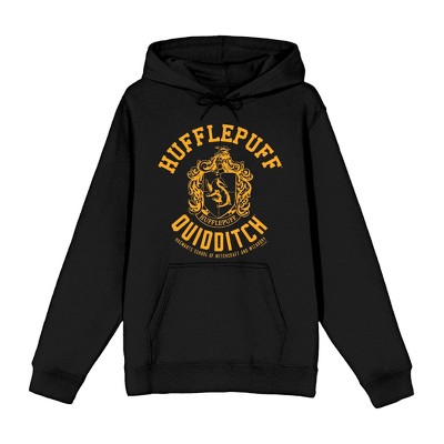 Harry Potter Hufflepuff Quidditch Crest Long Sleeve Black Adult Hooded Sweatshirt