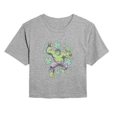 Women's - Marvel - Hulk Shamrocks Cropped Graphic T-Shirt