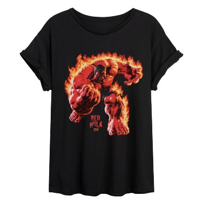 Women's - Marvel - Fire Red Hulk Oversized Graphic T-Shirt
