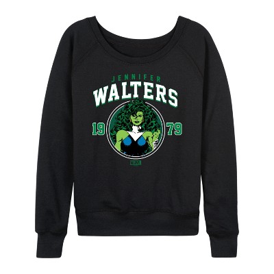 Women's - Marvel - She-Hulk Walters Lightweight French Terry Wide Neck Long Sleeve Graphic Shirt
