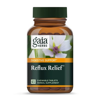 Gaia Herbs Reflux Relief - Digestive Comfort Support Supplement - Helps with Occasional Heartburn & Indigestion* - 45 Chewable Tablets (45 Servings)