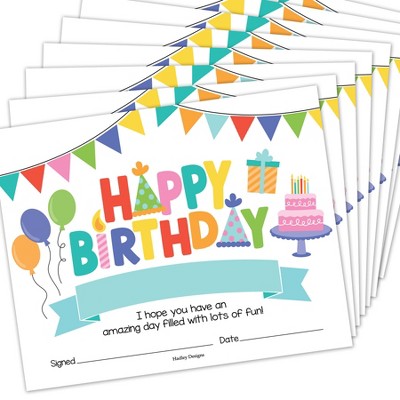 Hadley Designs Colorful Happy Birthday Certificates For Students, Set of 25