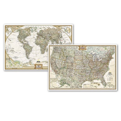 National Geographic World and United States Executive, Poster Size, Map Pack Bundle, 36" x 24"