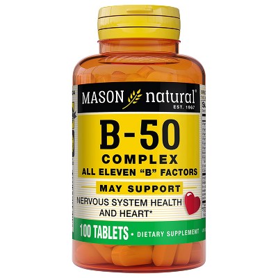 Mason Natural Vitamin B 50 Complex All Eleven "B" Factors - Supports Heart and Nervous System Health, Essential Nutrient Supplement, 100 Tablets