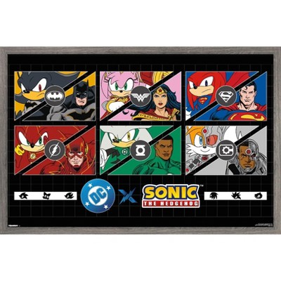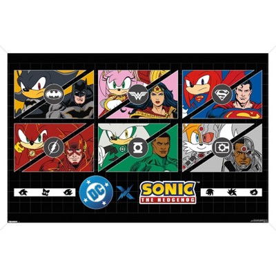 Trends International DC X Sonic The Hedgehog - Justice League And Team Sonic Framed Wall Poster Prints