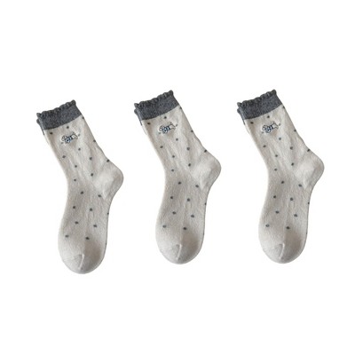 Anna-Kaci Women's 4 Pairs Knit Socks with Polka Dot Design Ruffle Edge Ribbed Cuffs Soft Stretch Fabric