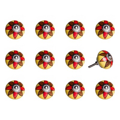 HomeRoots Set of Eight White And Red Ceramic And Metal Drawer Pull Knobs