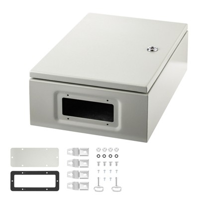 VEVOR Carbon Steel Electrical Box, 16x12x6 inches, Hinged Cover, IP66 Waterproof & Dust Resistant, Includes Mounting Plate, Gray-white