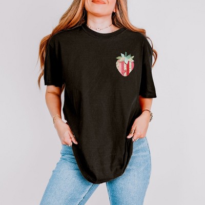 Strawberry Faux Patchwork - Women's Garment Dyed Graphic T-Shirt