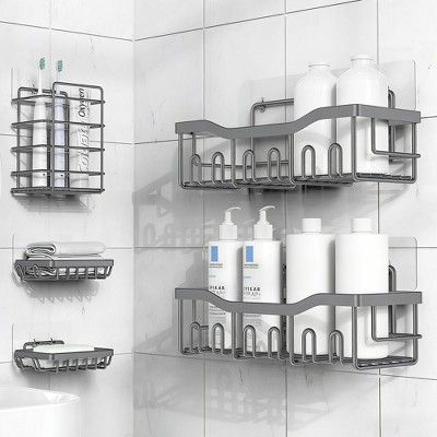 Dcolora 5-Pack Rustproof Adhesive Shower Caddy Set