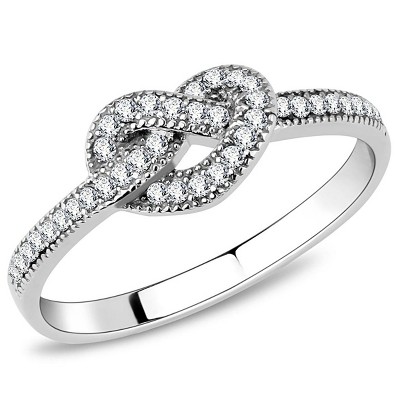 Slickblue Clear CZ Heart Charm Ring in Polished Stainless Steel - Ideal Mother's Day or Valentine's Gift, Size 5-10
