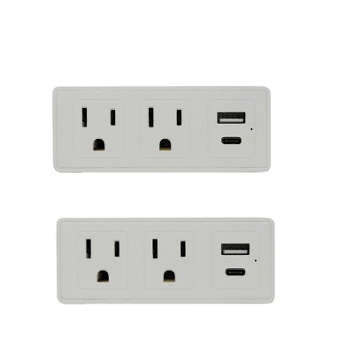 Ciao Tech 2 Pack Slim Multiport Charging Station 2 Outlets + 1 USB + 1 Type C w/ Surge Protection