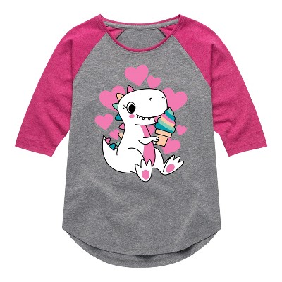 Girls' - Instant Message - Ice Cream Dinosaur Shirt Tail Raglan Graphic T-shirt