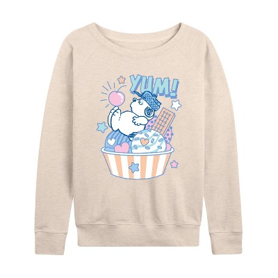 Women's - Peanuts - Olaf Ice Cream Lightweight French Terry Wide Neck Long Sleeve Graphic Shirt