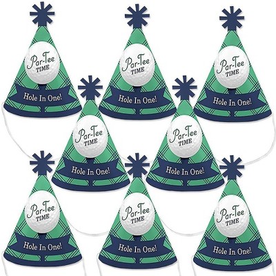 Big Dot of Happiness Par-Tee Time - Golf - Mini Cone Birthday or Retirement Party Hats - Small Little Party Hats - Set of 8