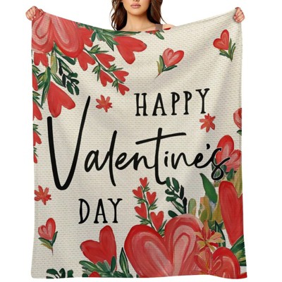Valentine's Day Throw Blanket - Watercolor Floral Happy, Ultra Soft Anti-Pilling for Bed & Gifts 50x60 inches