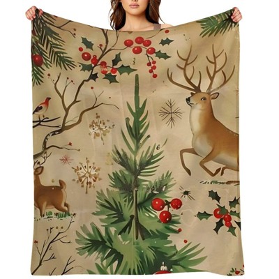 Lomsoe Vintage Brown Christmas Print Flannel Blanket - All Seasons Soft and Warm Throw Blanket for Napping, Camping, Travel, Office