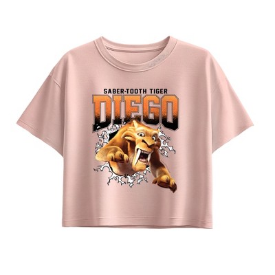 Girls' - Ice Age - Diego Collegiate Short Sleeve Boxy Graphic T-Shirt