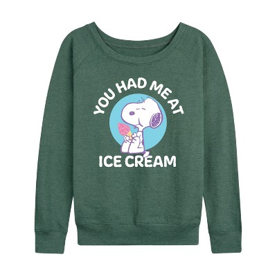 Women's - Peanuts - You Had Me At Ice Cream Lightweight French Terry Wide Neck Long Sleeve Graphic Shirt