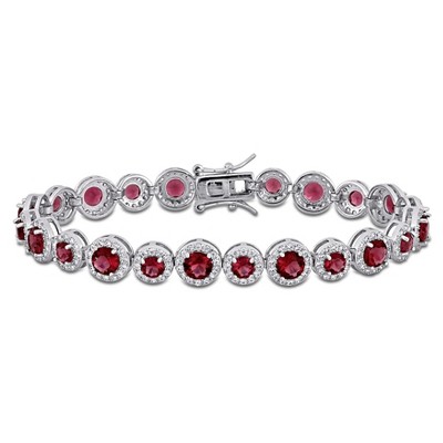 Opalata Sterling Silver, Round Blue Opal & CZ Tennis Bracelet - Blue - 7 Inch