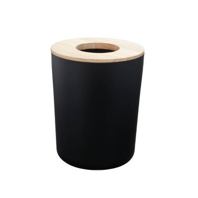 iDESIGN Steel Bathroom Wastebasket with Paulownia Wood Lid