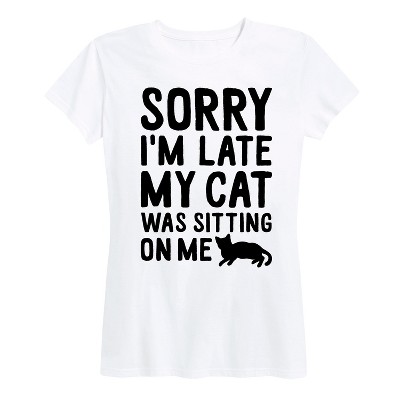 Women's - Instant Message - Sorry Im Late Cat Sitting On Me Short Sleeve Graphic T-Shirt