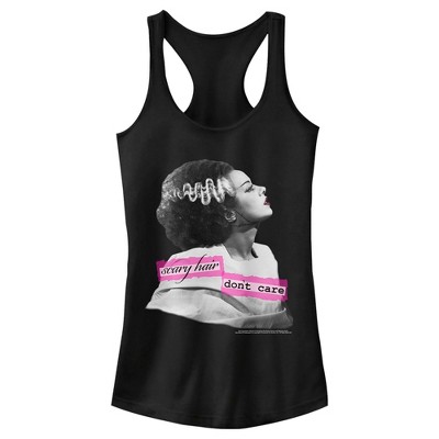 Juniors Womens Frankenstein Bride of Frankenstein Scary Hair Don't Care Racerback Tank Top
