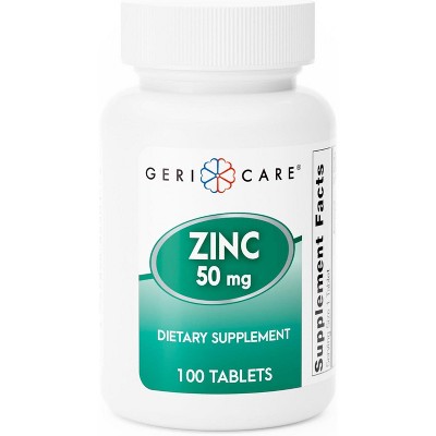 Gericare Zinc Sulfate 50 mg Tablets for Immune Support, Skin Health, and Essential Mineral Balance 100 Ct