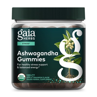 Gaia Herbs Organic Ashwagandha Gummies - Stress Support* - Made with Cinnamon & Ginger - Gluten Free & Vegan - 120 Count (40 Servings)