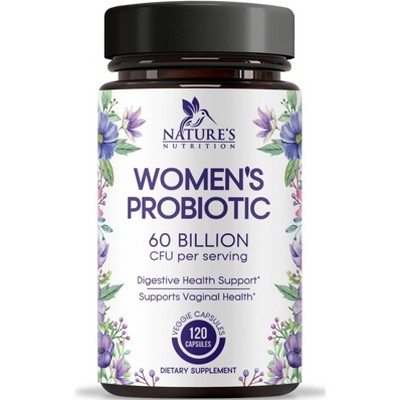 Probiotics for Women 60 Billion CFU - 16 Strains, Vaginal pH Health & Immune Support, Prebiotics & Cranberry - 120 Capsules By Nature's Nutrition