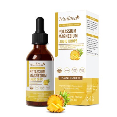 Mulittea Potassium Magnesium Liquid Supplement - Plus Calcium, Vitamin C, Zinc for Bone & Energy & Immune Support - 2 Fl oz(Pineapple flavor)