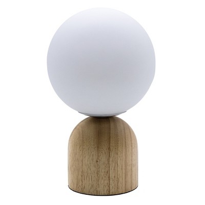 Opal Glass Globe Accent Table Lamp with Wooden Base and Dimmer
