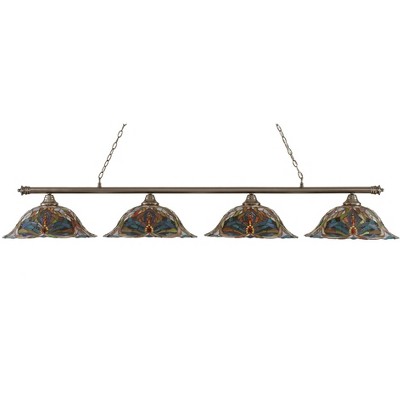 Toltec Lighting Oxford 4 - Light Island Pendant Light in Brushed Nickel with 19" Kaleidoscope Art Glass Shade