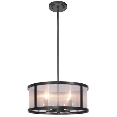 18" LED 1-Light Arden Iron Pendant Oil Rubbed Bronze/Beige - JONATHAN Y: Modern Linen Shade, ETL Listed, Adjustable Height