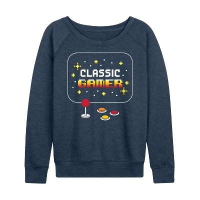 Women's - Instant Message - Classic Gamer Lightweight French Terry Wide Neck Long Sleeve Graphic Shirt