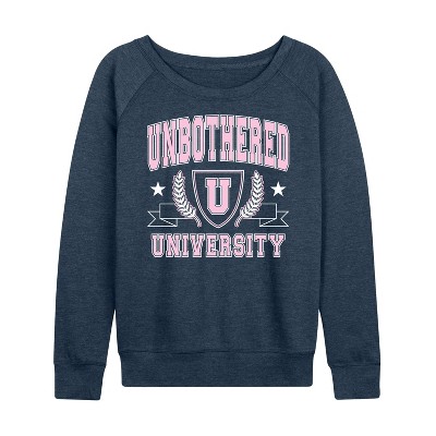 Women's - Instant Message - Unbothered University Lightweight French Terry Wide Neck Long Sleeve Graphic Shirt