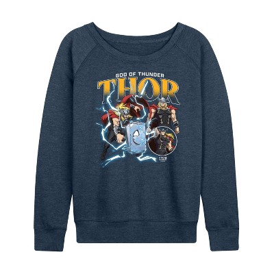 Women's - Marvel - Thor God of Thunder Lightweight French Terry Wide Neck Long Sleeve Graphic Shirt