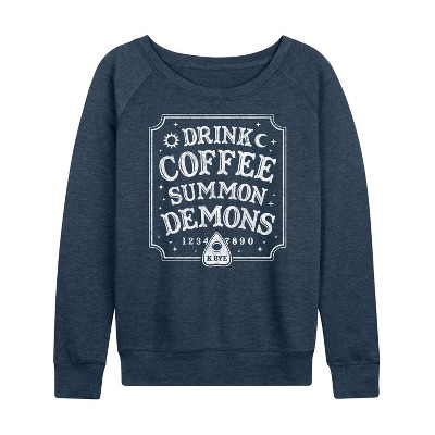 Women's - Instant Message - Drink Coffee Summon Demons Lightweight French Terry Wide Neck Long Sleeve Graphic Shirt