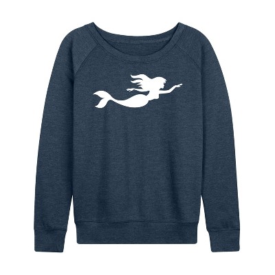 Women's - Instant Message - Mermaid Silhouette Lightweight French Terry Wide Neck Long Sleeve Graphic Shirt