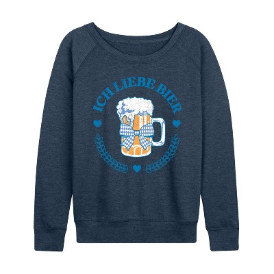 Women's - Instant Message - Ich Liebe Bier Oktoberfest Lightweight French Terry Wide Neck Long Sleeve Graphic Shirt