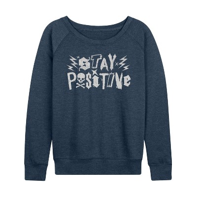 Women's - Instant Message - Stay Positive Punk Lightweight French Terry Wide Neck Long Sleeve Graphic Shirt