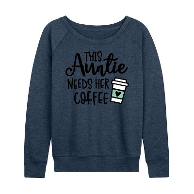 Women's - Instant Message - This Auntie Needs Her Coffee Lightweight French Terry Wide Neck Long Sleeve Graphic Shirt
