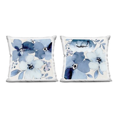 HomeRoots 16" X 16" Blue And White Floral Blown Seam Suede Throw Pillow