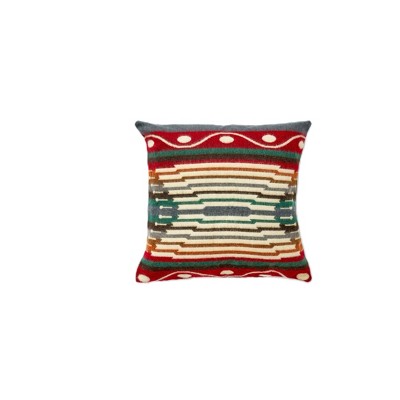 18" X 18" Blue And Brown Geometric Blown Seam Suede Throw Pillow