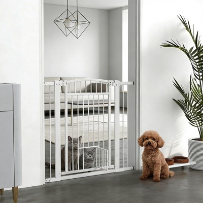 SEVOBAL Pet Doors Gates and Pens Extra Wide Walk Through Dog Gate with Cat Door Adjustable Locking Design, White, 40.9"*2"*30.3"
