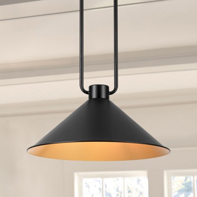 Farmhouse Industrial Iron LED Pendant Black/Brass Gold - JONATHAN Y