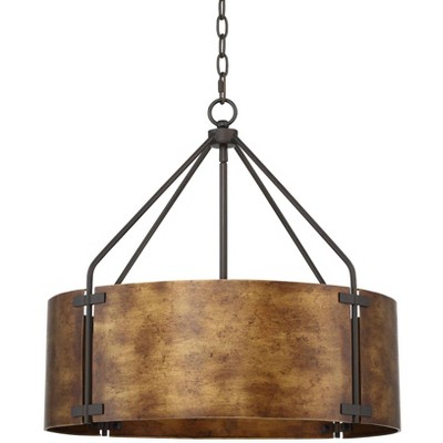 Possini Euro Design Julian Rustic Bronze Pendant Chandelier 22" Wide Industrial Metal Drum Shade 4-Light Fixture for Dining Room
