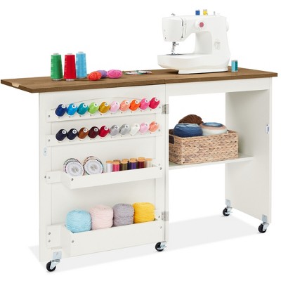 Best Choice Products Sewing Machine Table & Desk w/ Craft Storage and Trays - Walnut/Cream